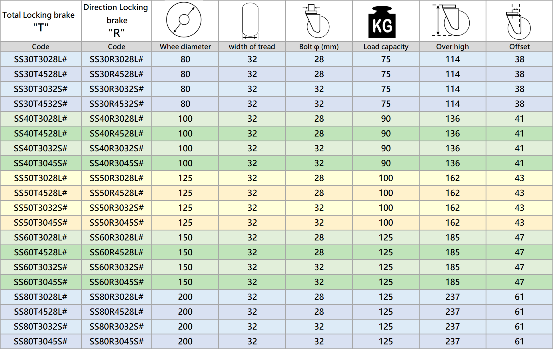 ● Smooth switching features:Up to three locking positions: directional brake, full brake or free movement.