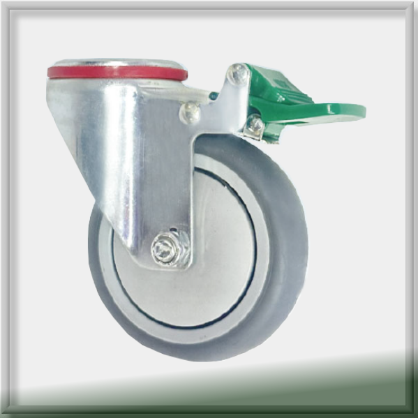 MD36中空定向腳輪採用厚鋼板沖壓並經過鍍鋅處理,防鏽且耐用。這款綠色踏板的「定向鎖定」功能是專為長距離直線推行設計的。踩下後會鎖定轉向架的旋轉,使輪子只能前後直線滾動,不會左右擺動。這對於在醫院長走廊推動笨重的病床或推車非常有幫助。 輪子有TPR (熱塑性橡膠)與聚氨酯(複合料) 應用領域: 醫院病床、護理床、醫療技術設備 藥車、護理車、電腦裝置 展示架、食品運輸設備、手推車